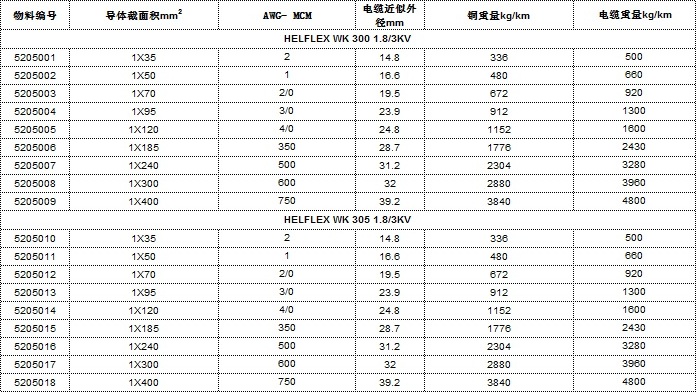 - HELFLEX WK 300/305技術參數
