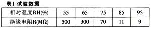 (1) 濕度的影響表 1 中的一組試驗數據, 表明濕度對絕緣電阻測量的影響。 由表 1 可見,絕緣電阻對濕度變化是很敏感的。 相對濕度增加, 絕緣電阻降低。 當環境的相對濕度大于75 %時, 一般在絕緣材料表面上開始出現微小的水珠或薄薄的水膜。 實際上, 表面絕緣電
